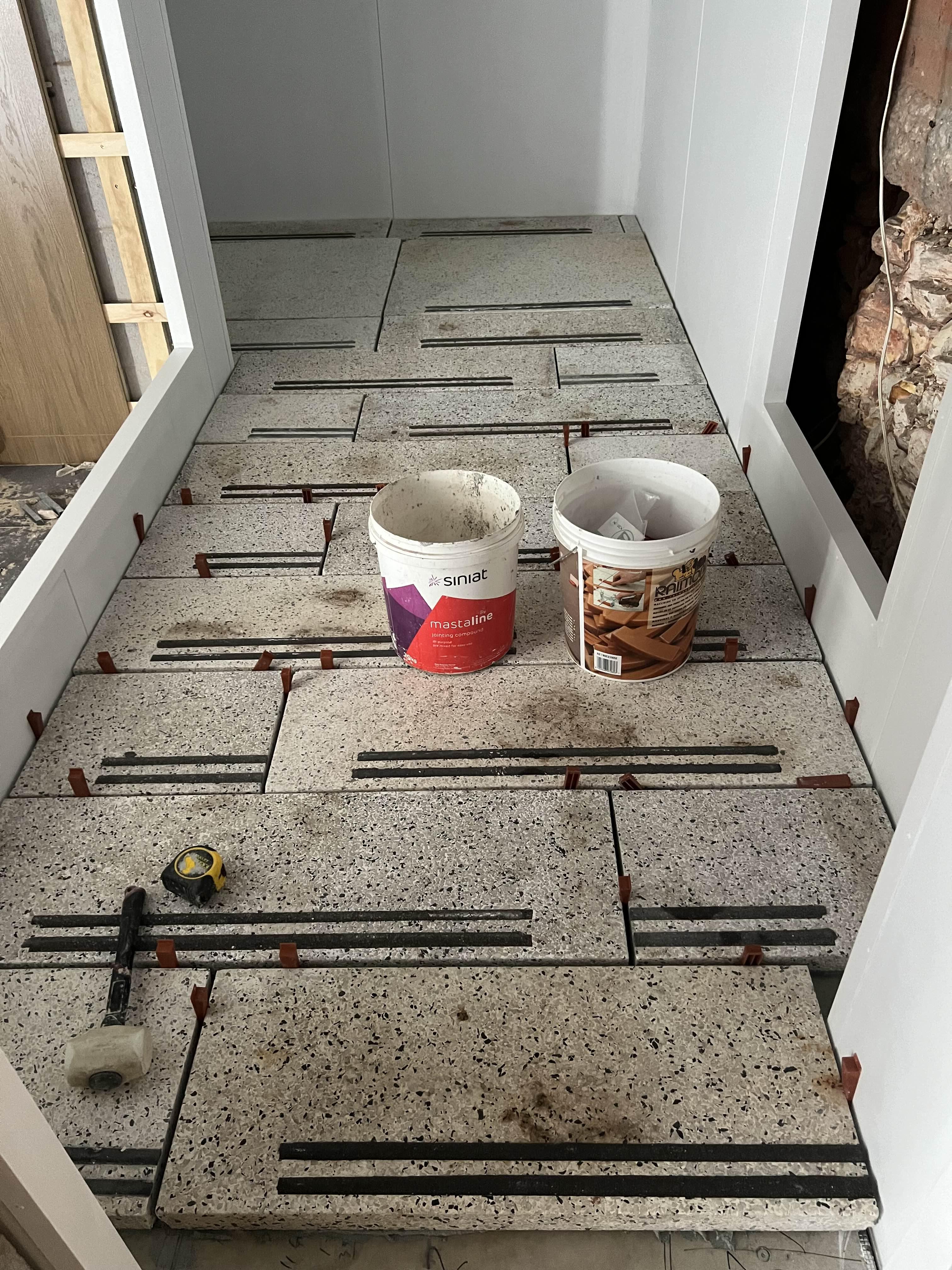 ์คํ์ ๋ฐ๊นฅ์ชฝ ์ธ์ฅ ๋ฐ๋ฅํ์ผ์ ์์ํ๋ค.(900x900 ๋๊ผ 20mm)